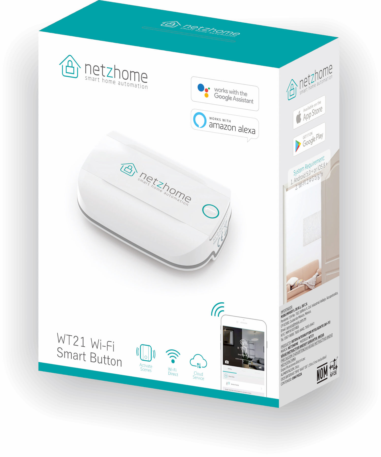 El botón inteligente de Netzhome le permite tomar control, puedes configurar dos escenas diferentes (presiona una vez para una escena o dos veces para otra escena). También puedes usarlo para controlar otros dispositivos Netzhome en otra ubicación por completo, siempre que haya una conexión Wi-Fi. Modulo Wi-Fi integrado. Compatible con los asistentes Amazon Alexa y Google.